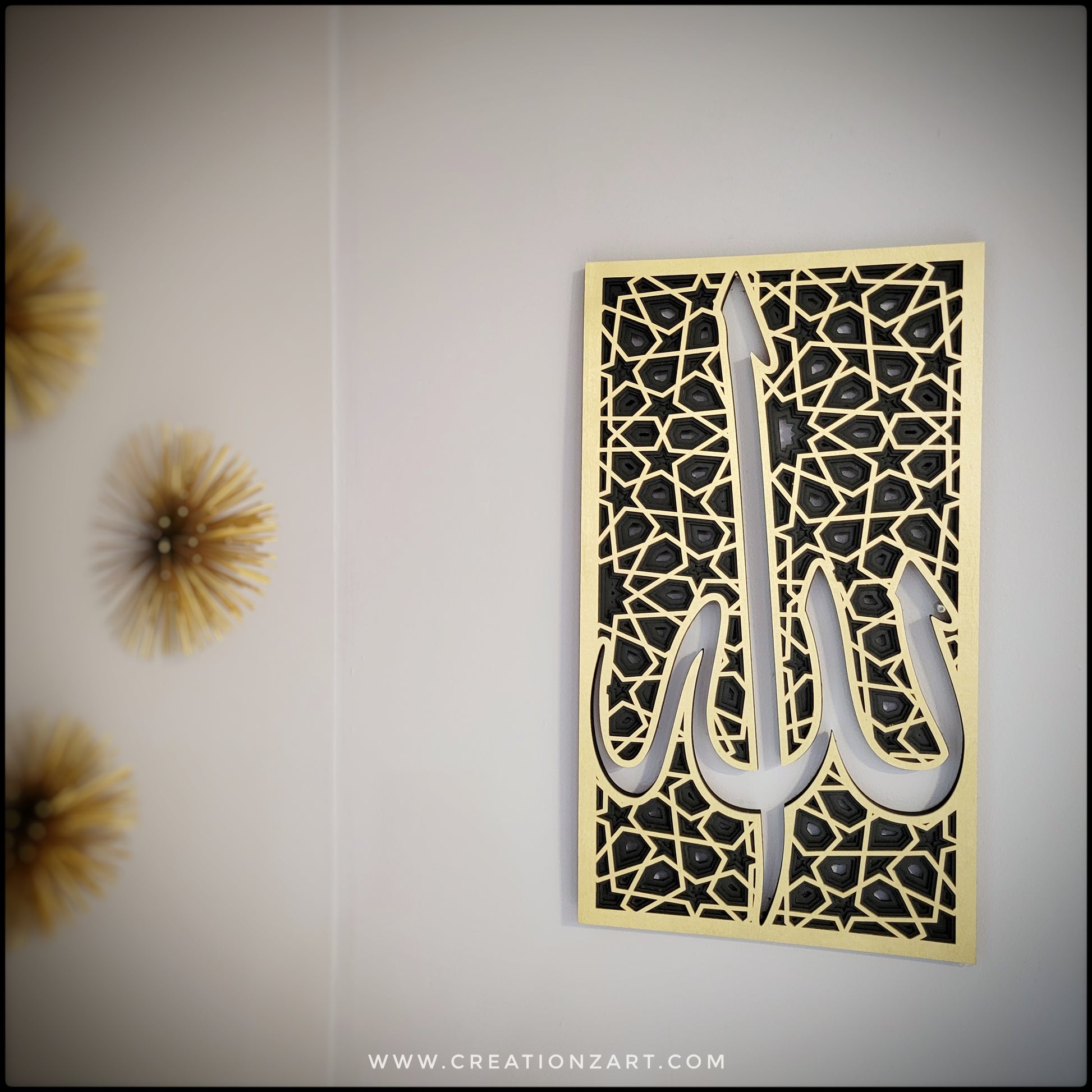 This collection is created by carefully designing multiple layers of artwork, neatly stacked together, to create a beautiful depth effect. Combine this with words of Allah, and you got a piece that will provide joy for years to come.