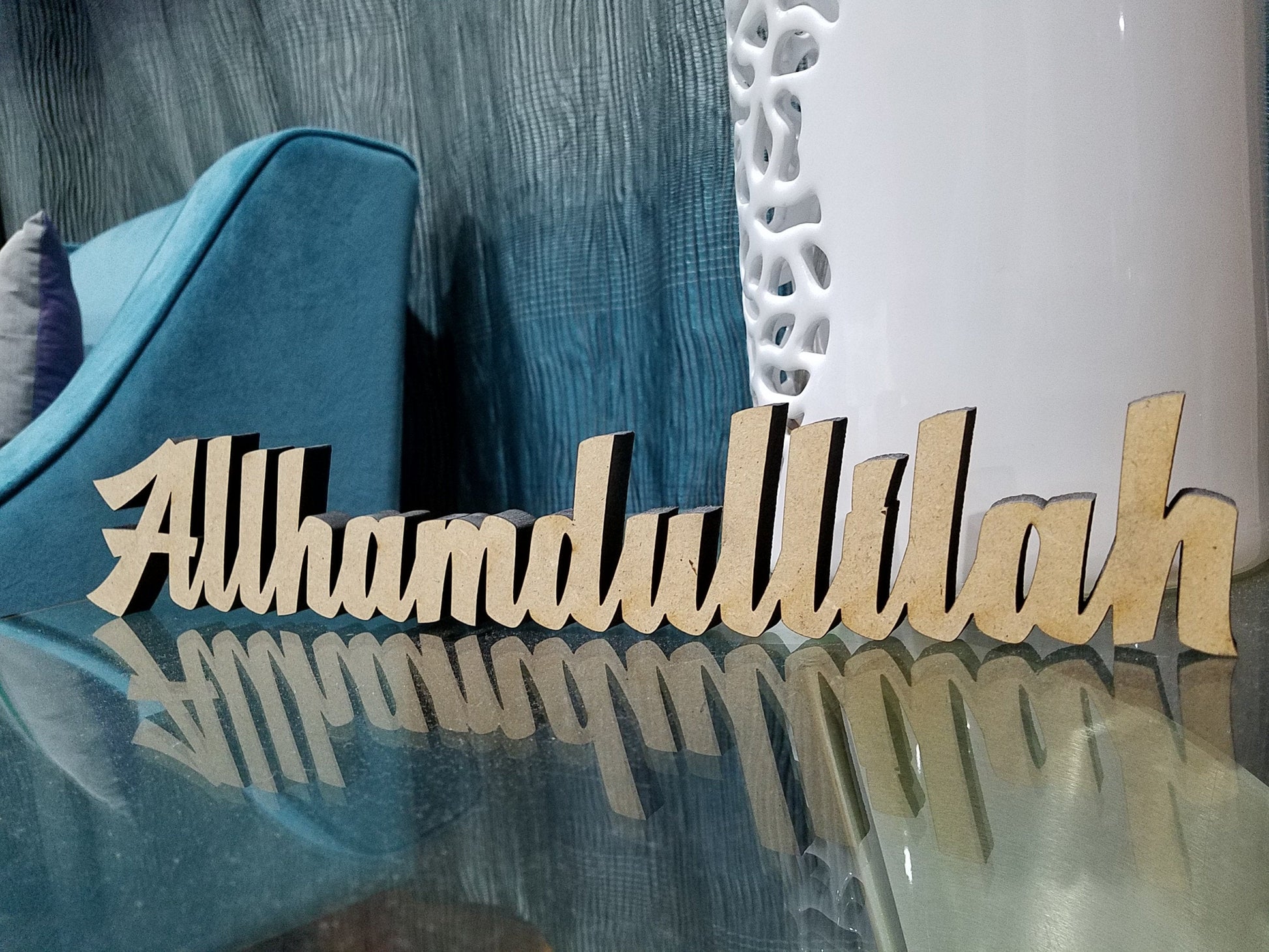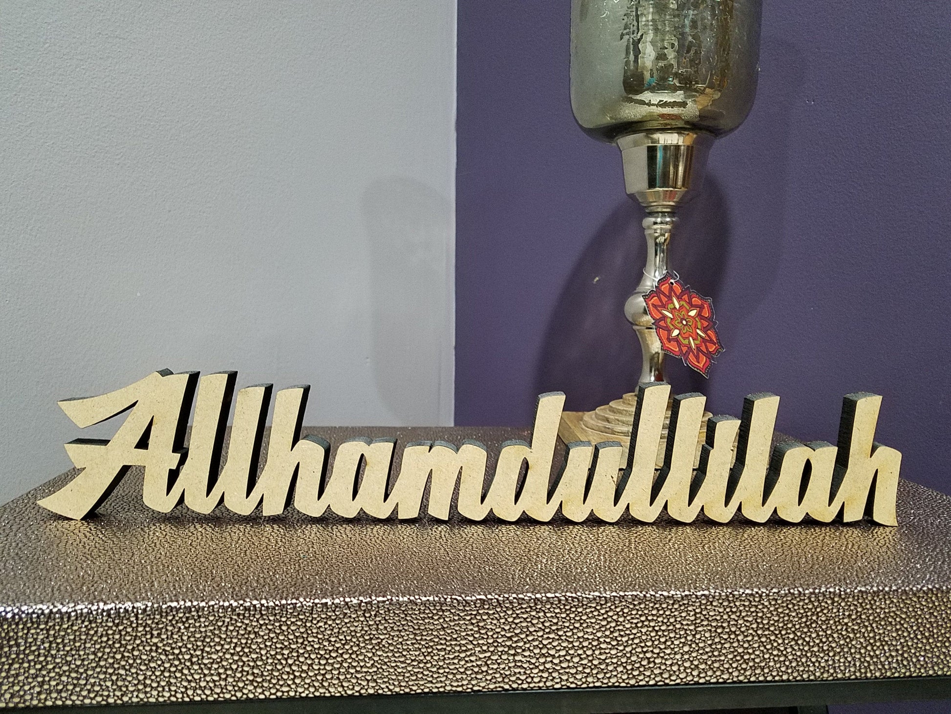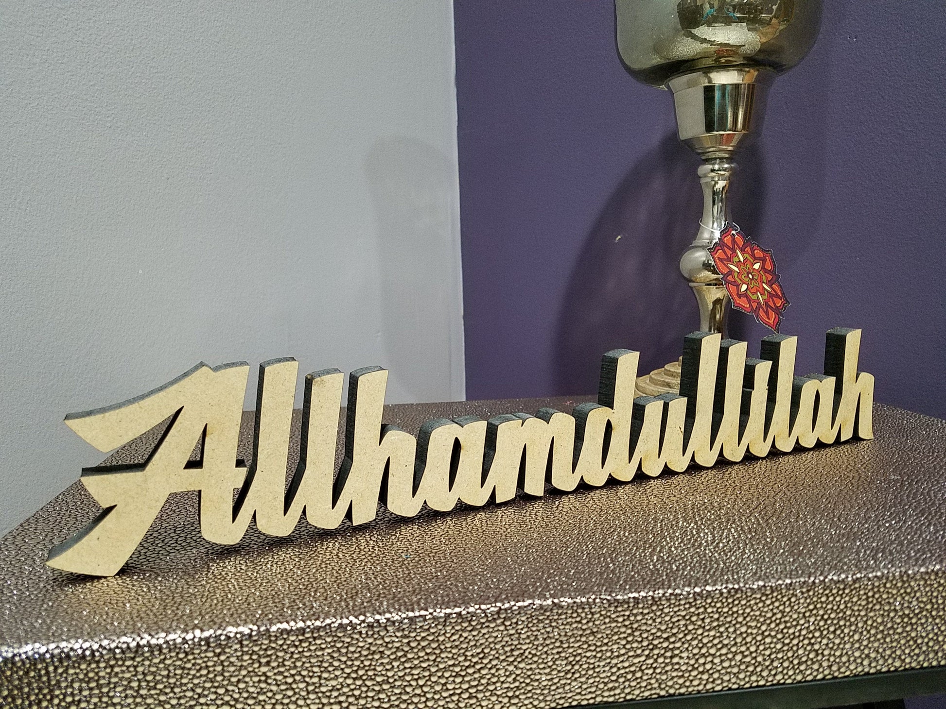 Tabletop Allhamdullilah artwork. This is a laser cut product created with extreme precision.