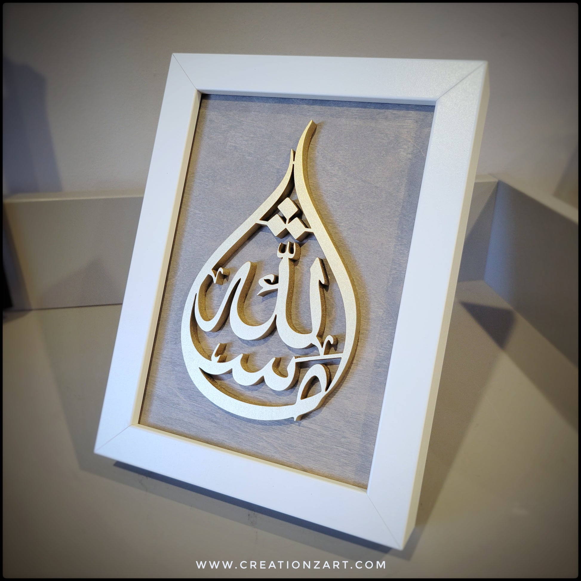 MashAllah wood artwork frame - Islamic Artwork - modern Arabic calligraphy art