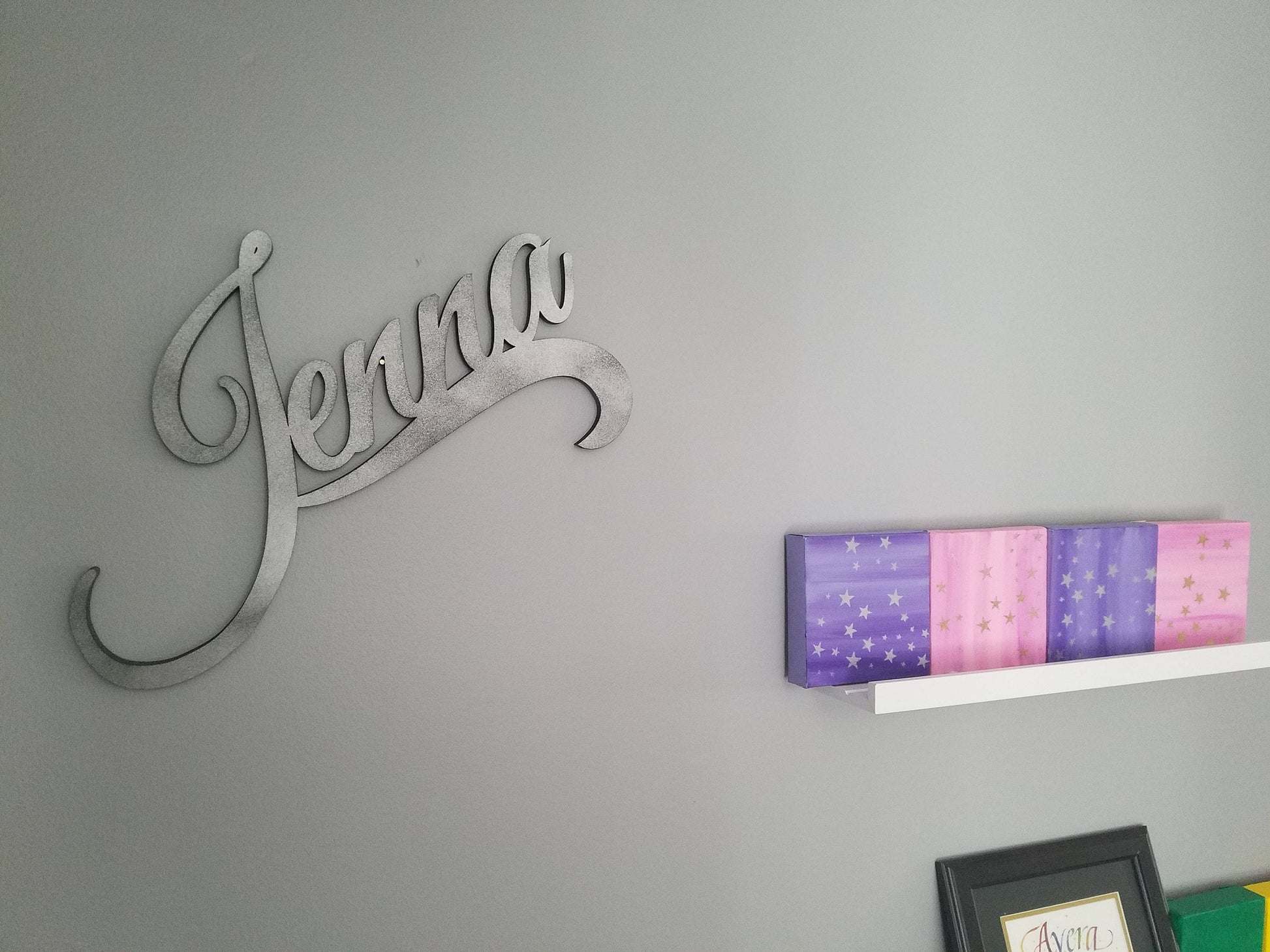 Beautiful wood carved in Cursive style artwork for kids nursery. These customized work will add a unique touch to your little ones sanctuary!
