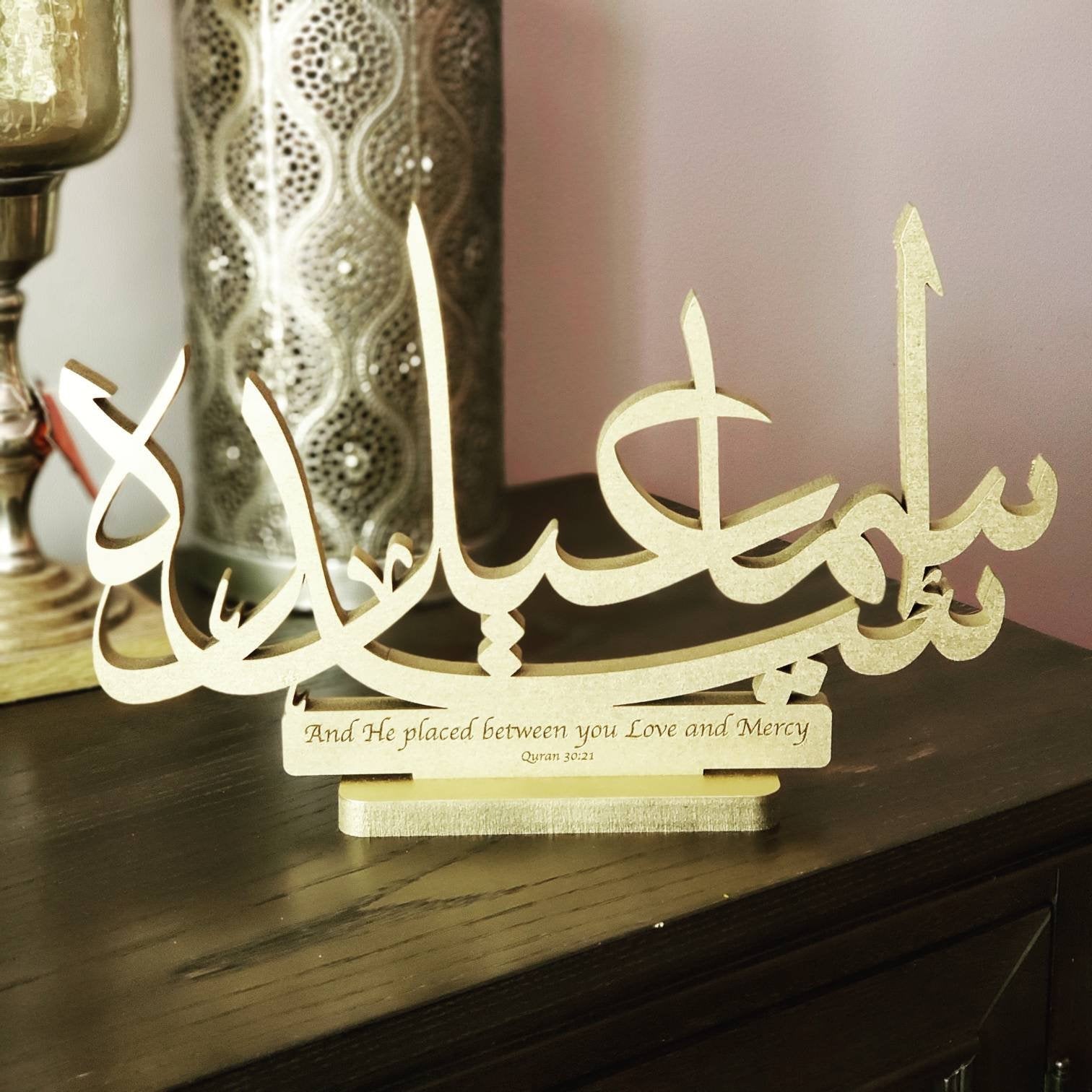 The piece is beautifully laser carved out of wood and it comes with a base to display as a table top artwork.