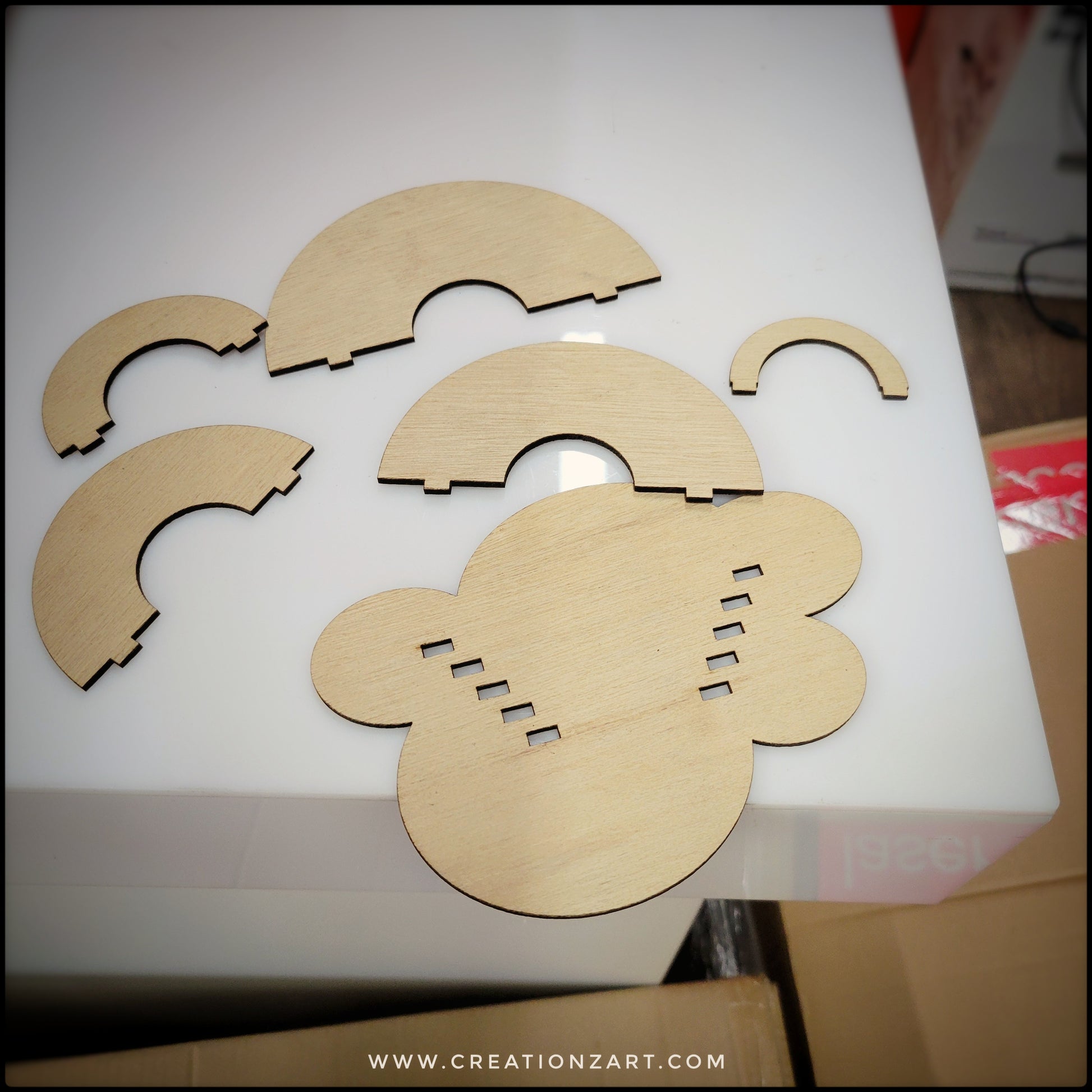 Made out of 1/8" plywood. Can be painted with acrylic paints or markers.