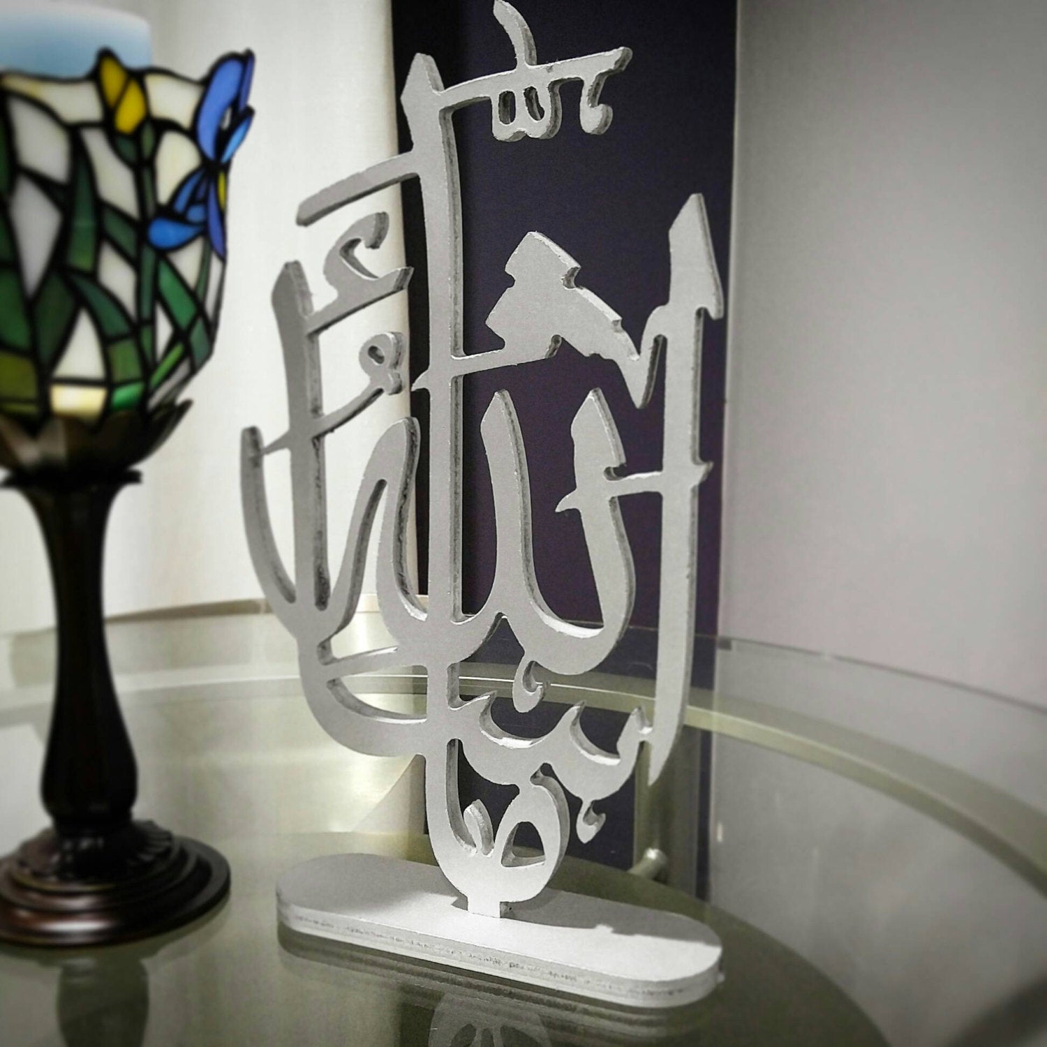 This is one-of-a-kind precisely carved wood artwork. It is pronounced as 'Maa-sha-Allah". Ideal for table top display in entry way console table.