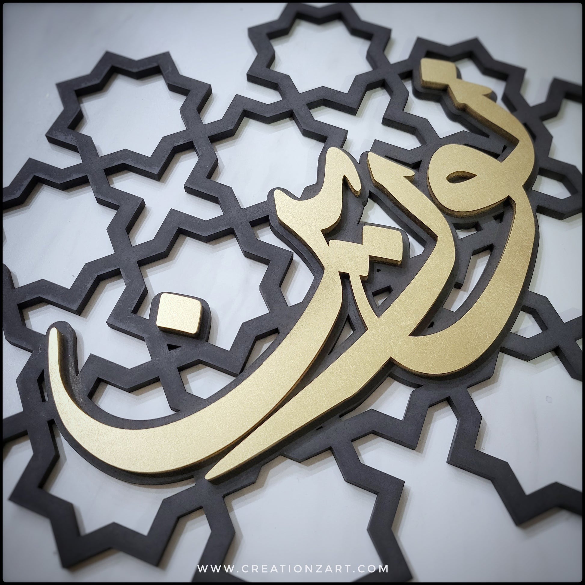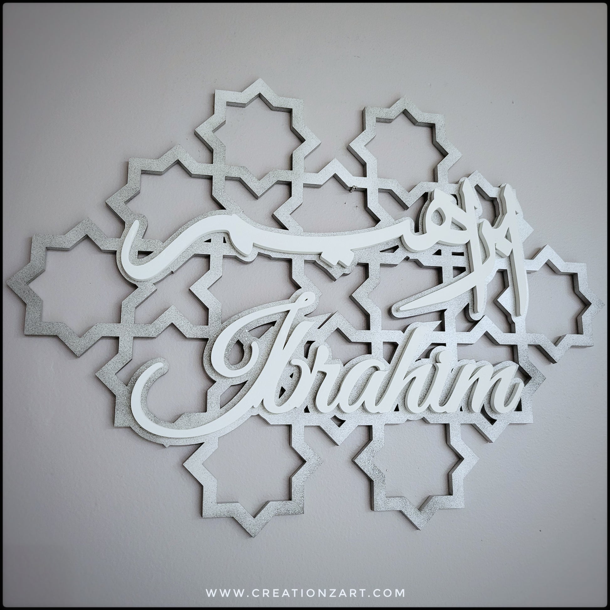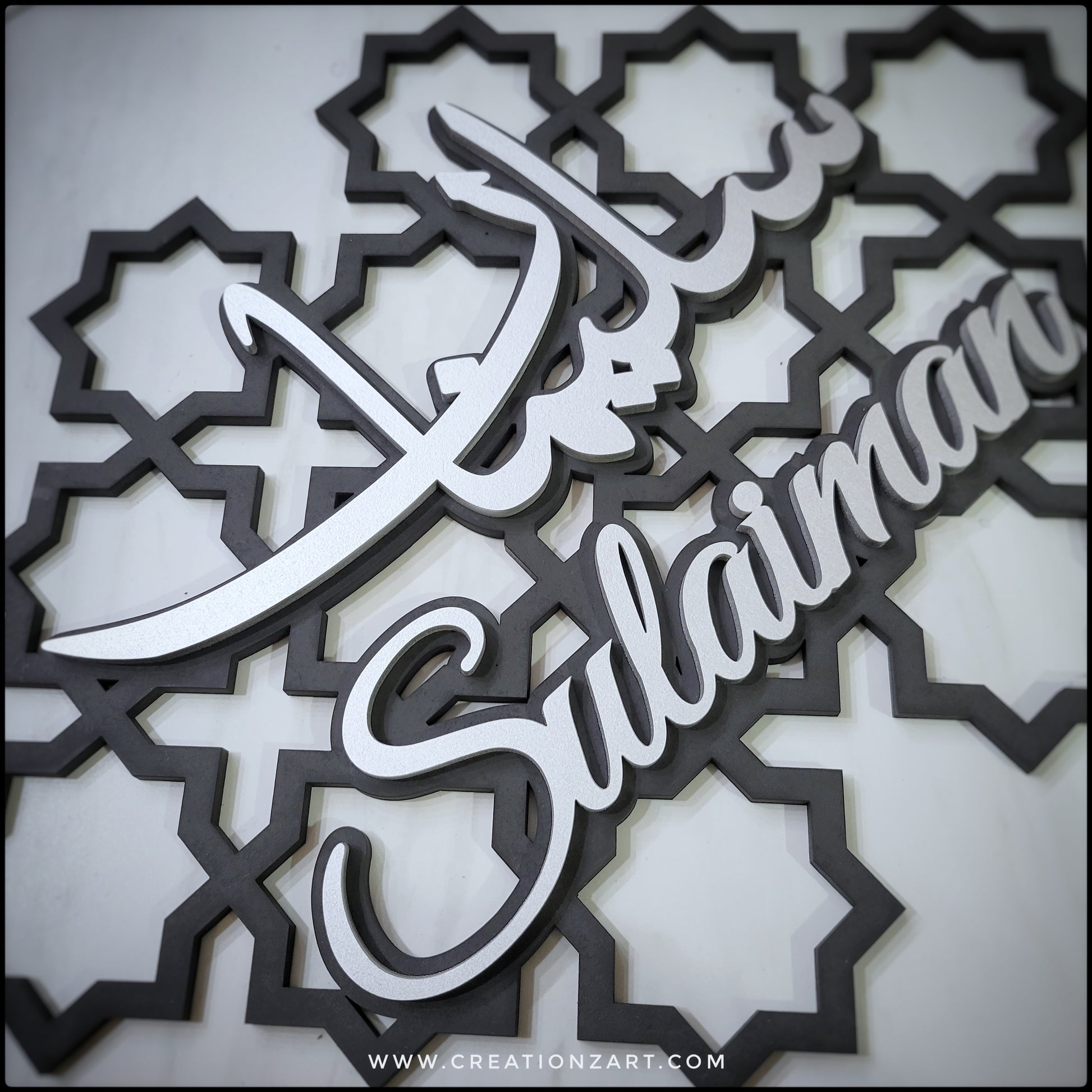 These are created with a beautiful geometric pattern as the background layer and an additional layer on top with the calligraphy.