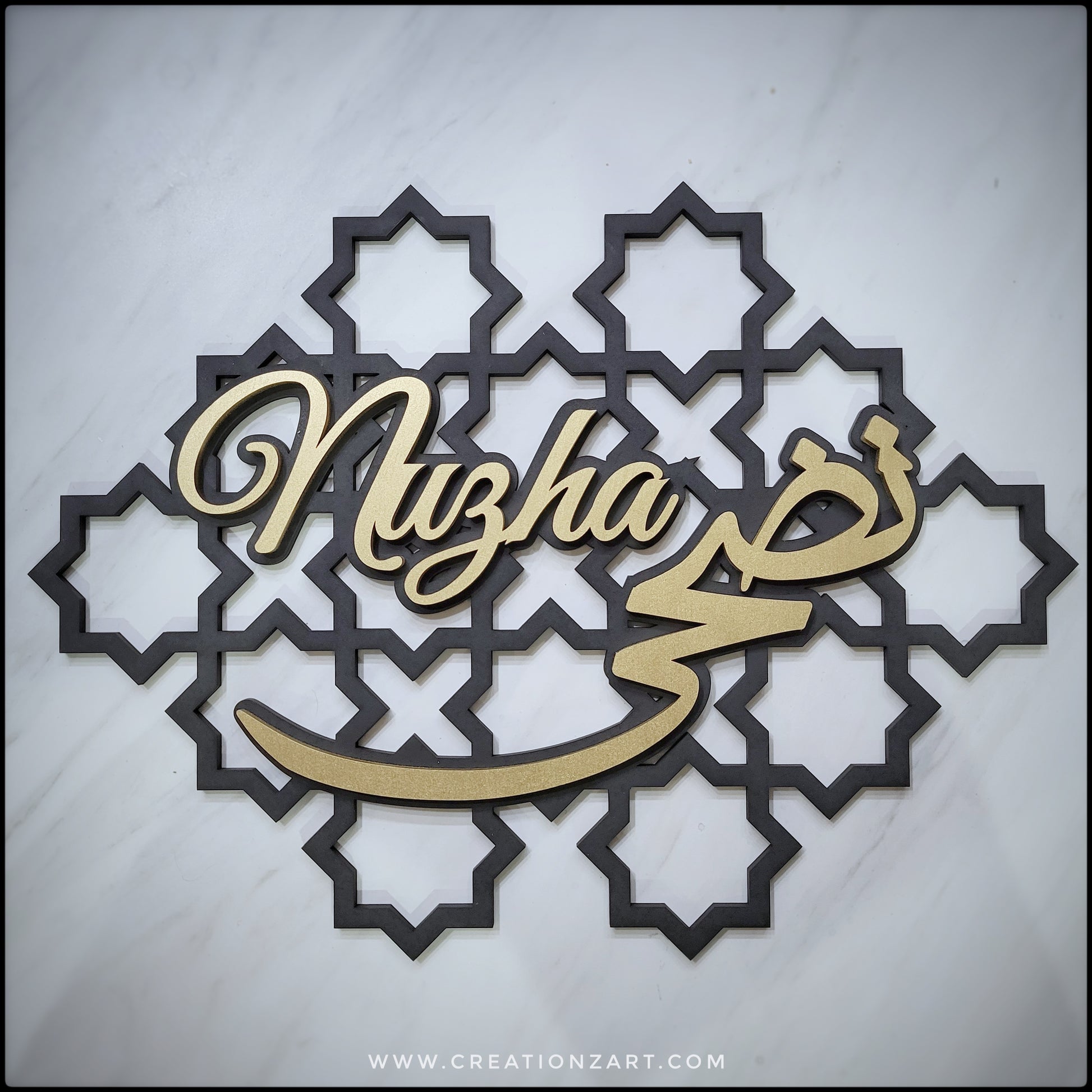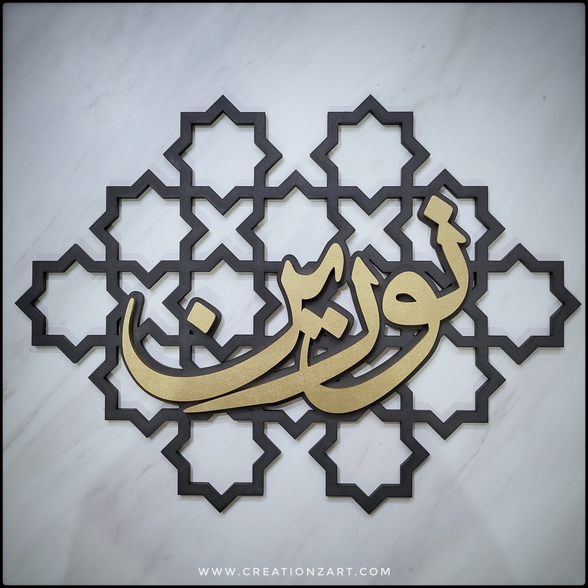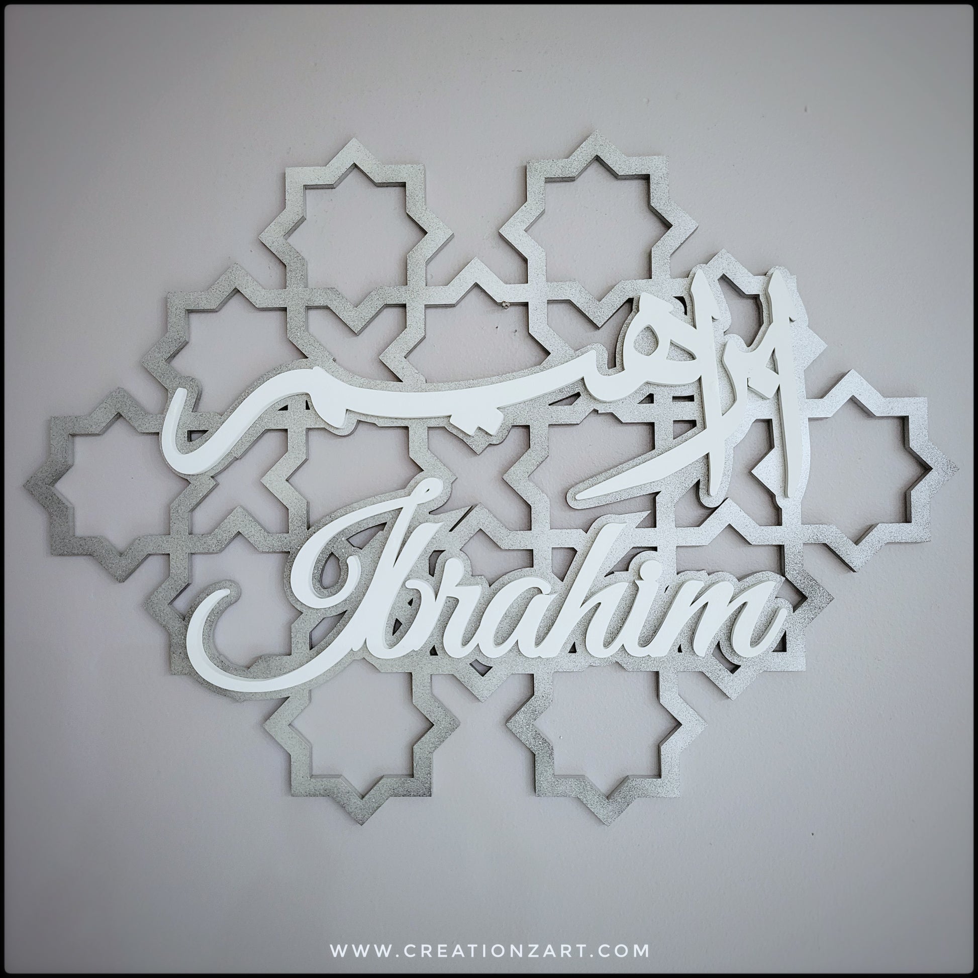 These are created with a beautiful geometric pattern as the background layer and an additional layer on top with the calligraphy.