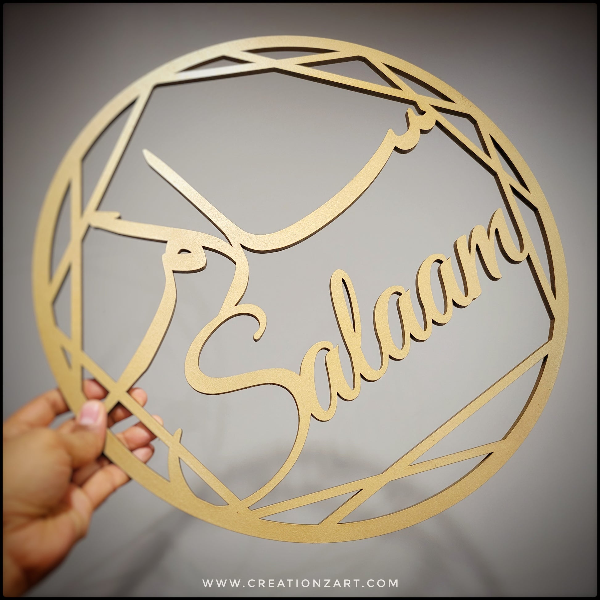 Salaam Art work. It can be used as a door wreath or as an entryway wall art.