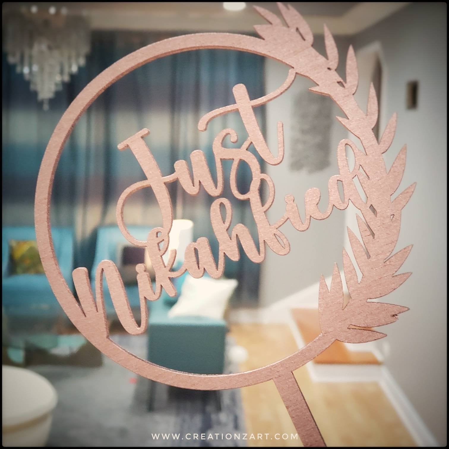 Very unique cake topper for your big day. this one says "Just Nikahfied".. ideal for Nikah (Muslims Wedding) ceremony. 🙂